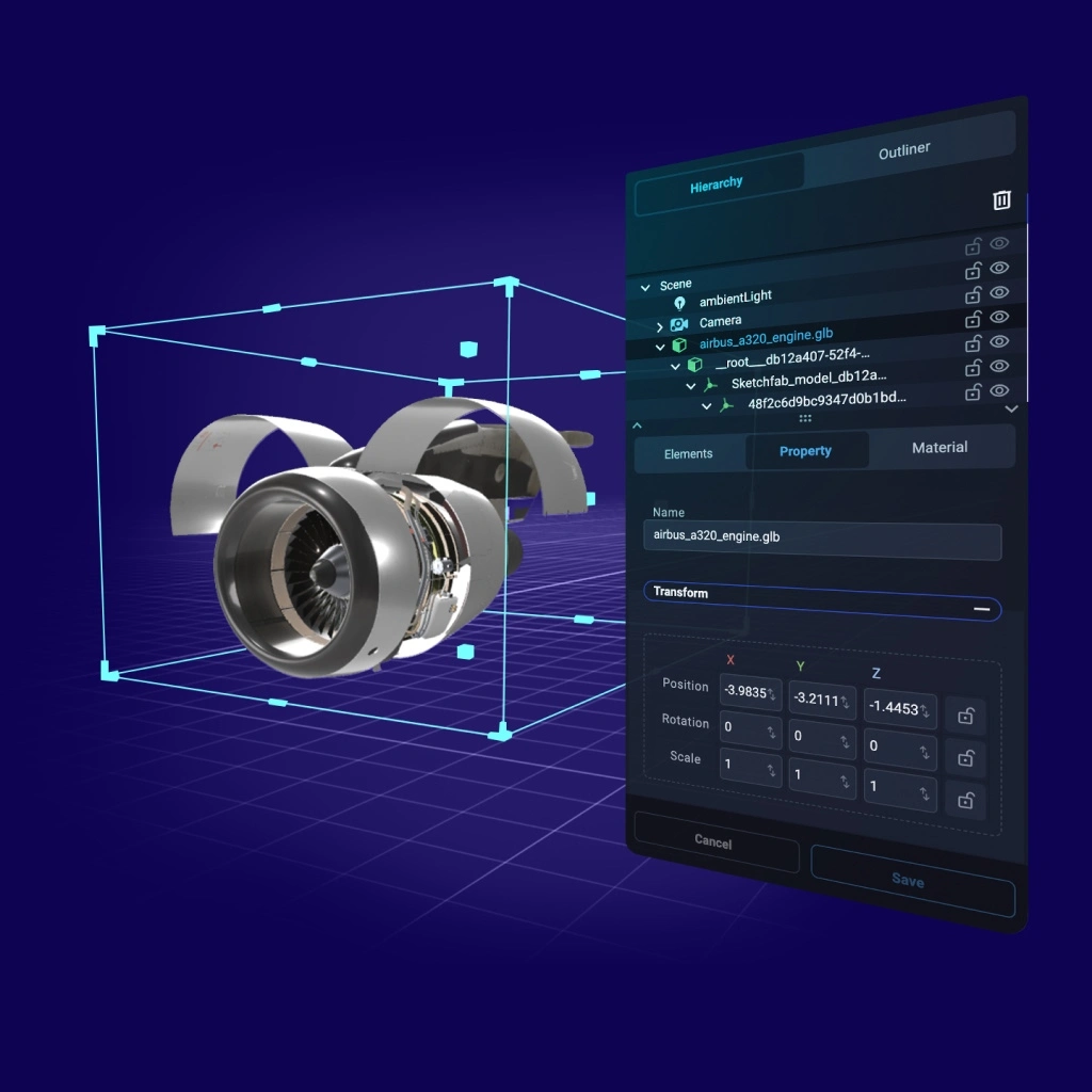 Create immersive scenes in just a few steps. Drag, drop, and arrange assets visually. From 3D models to multimedia content, position everything exactly where you want it, with zero technical barriers.